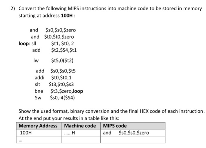 Solved 2 Convert The Following Mips Instructions Into Chegg Com
