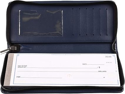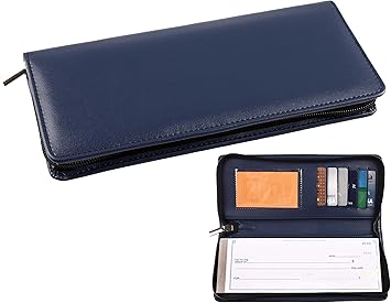 Amazon Com Business Size And Travelers Check Checkbook Cover Pu Leather With Zipper And Built In Storage Pockets For Side Tear Checks Navy Blue Office Products