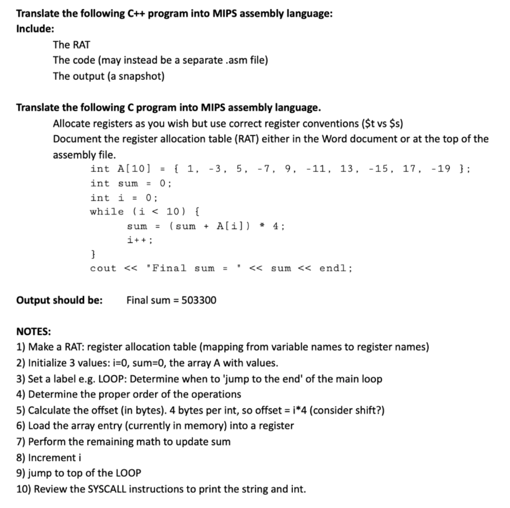 Translate The Following C Program Into Mips Chegg Com